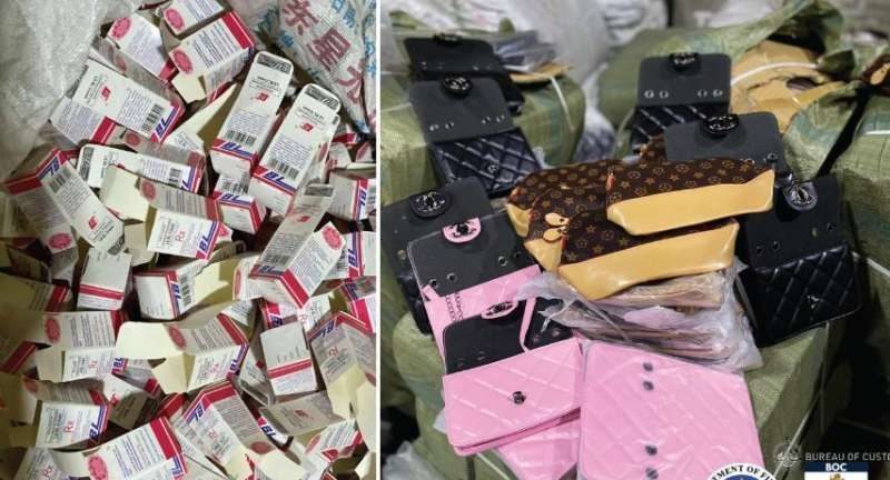 UMABOT ng P100-milyong piso ang kabuuang halaga ng mga nasabat na pekeng bags at gamot ng Bureau of Customs (BOC) sa isang storage facility sa Tondo.