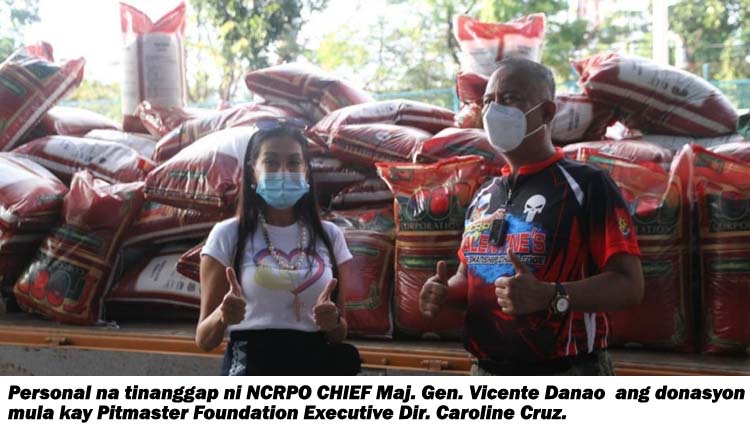 Personal na tinanggap ni NCRPO CHIEF Maj. Gen. Vicente Danao ang donasyon mula kay Pitmaster Foundation Executive Dir. Caroline Cruz ang nasabing bigas.