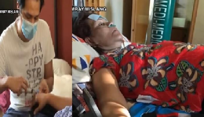 Mayroon silang IV tube at oxygen tank para matulungan sa paghinga ang kaniyang ina na “moderate to severe” case ang kalagayan.
