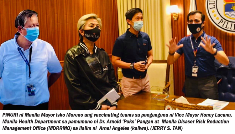 Ipinagkakapuri ni Moreno ang dedikasyon ng mga opisyal ng lungsod, gayundin ng mga kawani na direktang tumutulong sa mass vaccination program, partikular sina Vice Mayor Honey Lacuna, Manila Health Department sa pamumuno ni Dr. Arnold ‘Doks’ Pangan at ang Manila Disaser Risk Reduction Management Office (MDRRMO) sa ilalim ni Arnel Angeles, at iba pa.