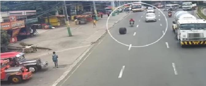 NAHULI-CAM ang trahediya sa DasmariƱas, Cavite nang tumama sa isang lalaki at isang buntis ang gulong na kumalas sa tumayakbong trak.