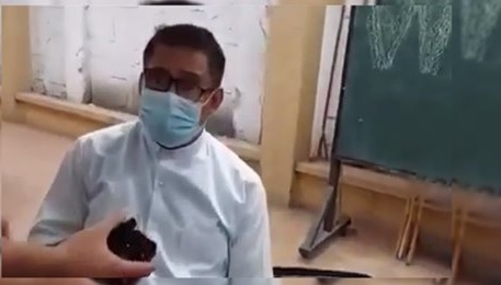 Sa kumakalat na video sa social media, nagtungo ang mister sa social hall ng simbahang pinaglilingkuran ng pari.