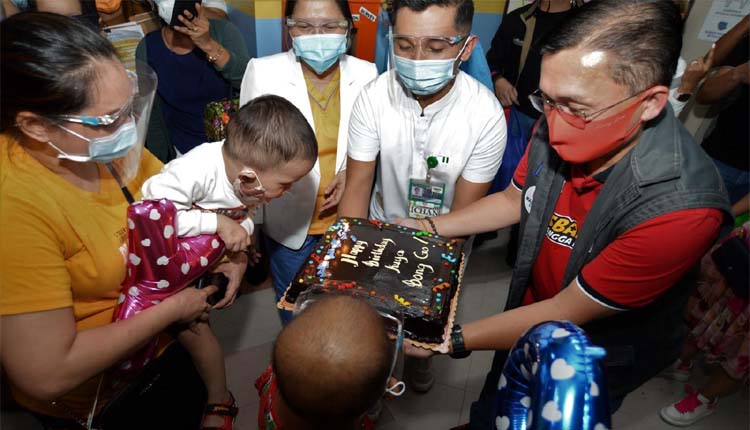 Matapos pangunahan ang pagbubukas ng Malasakit Center, personal na binati si Go sa kanyang kaarawan ng mga batang cancer patients at ng kanilang pamilya sa Oncology Unit.