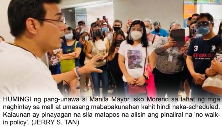 Ipinag-utos na rin ni Moreno ang pagpapatuloy ng kanilang walk-in policy o open policy system para mas mapabilis ang pagbabakuna sa lungsod matapos na langawin ang mga vaccination centers nang ipatupad nitong Lunes ang ‘by schedule’ na pagbabakuna.
