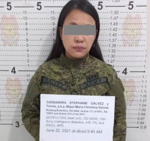 Kinilaa ang dinakip na si Cassandra Stephanie Galvez alias “Major Maria Christina Galvez.”