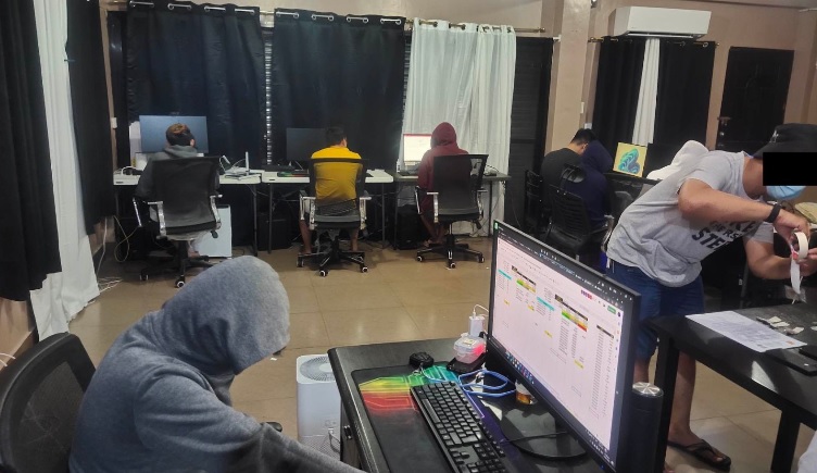 Kinumpiska rito ang pitong set ng computers, iba pang gamit sa online casino at P29,500 bet money.