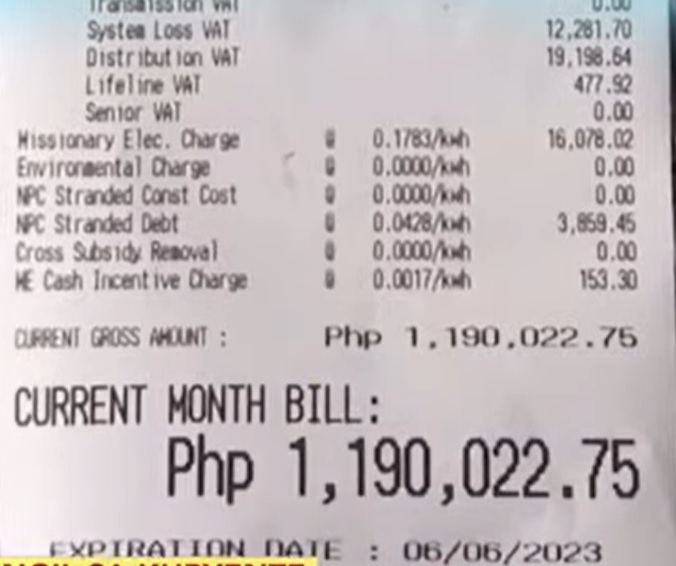 Sa ulat, sinabing 6,381 kilowatt-hours ang konsumo ng customer, na dapat sana mahigit P54,000 lamang ang bill, kung gagamiting basehan ang P8.50 per kilowatt-hour rate sa statement of account.