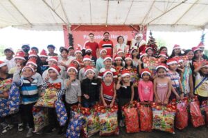 Sa unang pagkakataon, binigyan ng pamilya Villar ng Christmas Party treat ang may 50 bata mula sa Baseco, Tondo sa kanilang Villar Children’s Farm, sa Bacoor City. Itinampok sa party ang isang magician show at maraming laro kung saan ang mga bata ay sumasayaw, kumanta at nagsaya sa mga amenities ng mga batang sakahan. Tuwang-tuwa din ang mga bata sa mga premyo na napanalunan nila sa mga parlor games, pagkain at mga regalo na kanilang pinagsaluhan para sa lahat. Makikita sa larawan na binati ni dating Senate President Manny ang mga bata, habang pinangunahan naman nina Sen. Cynthia Villar, Sen. Mark Villar at Vistaland CEO Paolo Villar ang pagbibigay ng regalo. (CESAR MORALES)